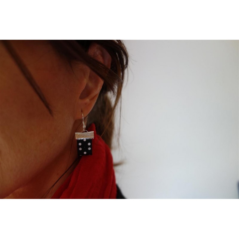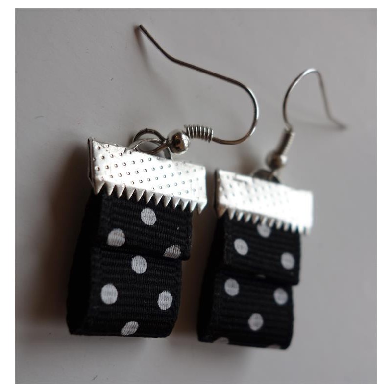 Boucles d'oreilles ruban noir à pois