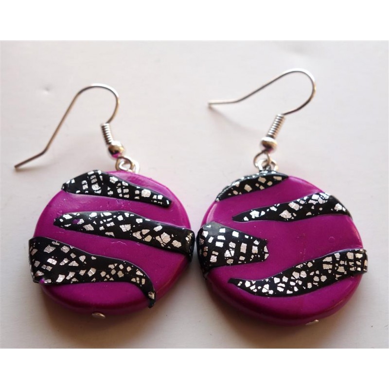 Boucles d'oreilles zèbre fuchsia