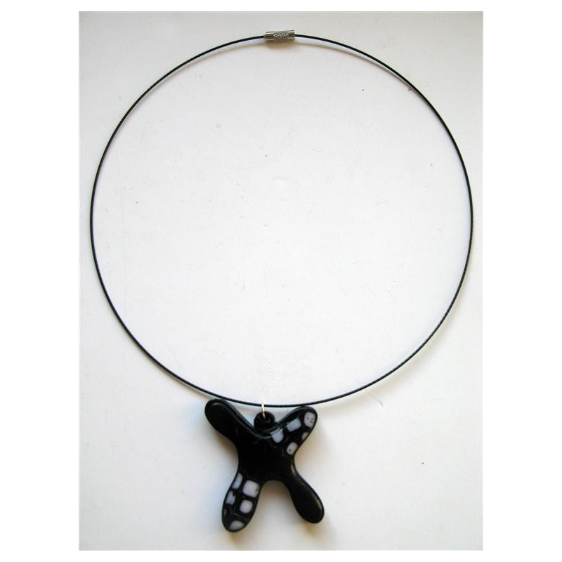 Collier "bonhomme" noir et blanc pailleté avec cable rigide