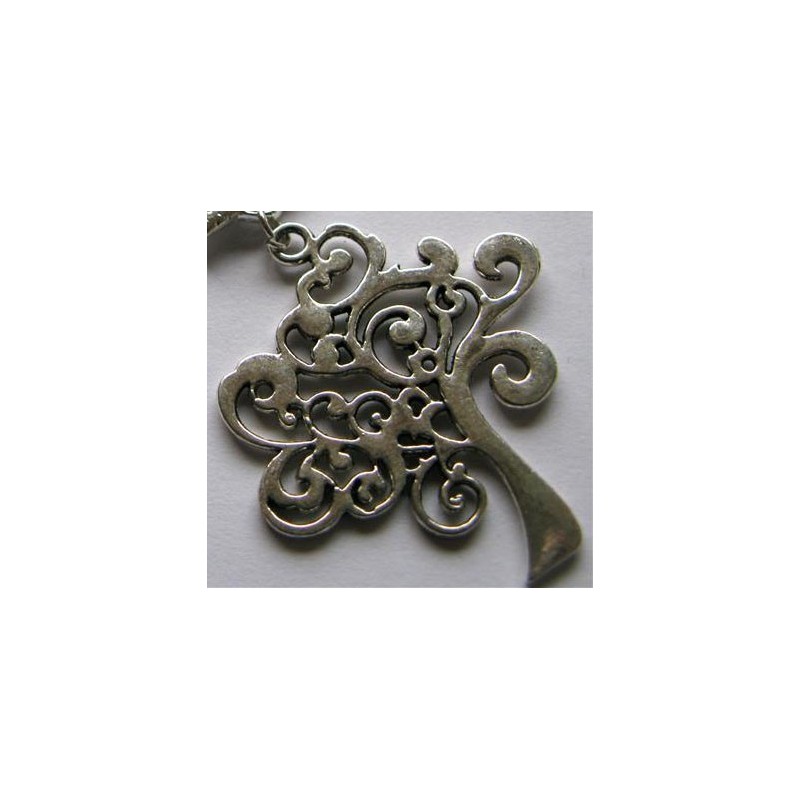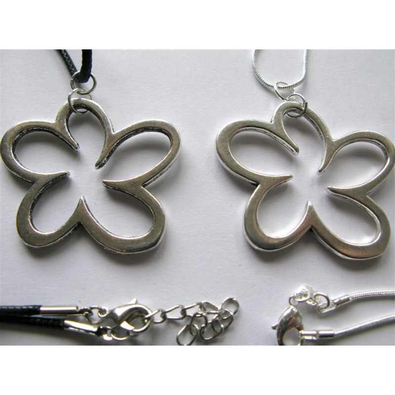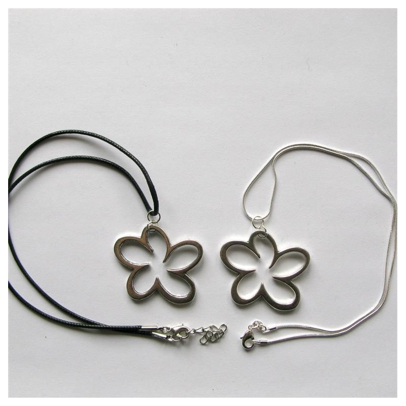 Collier avec pendentif grosse fleur stylisée en métal argenté.