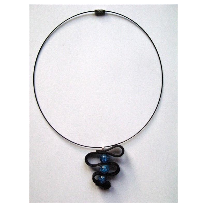 Collier réalisé avec un pendentif cuir plat et perles turquoise en verre effet craquelé