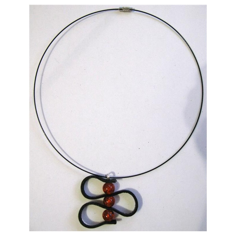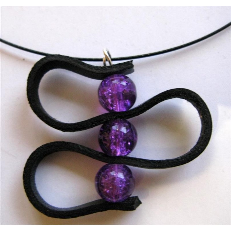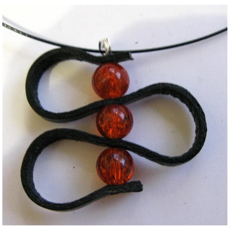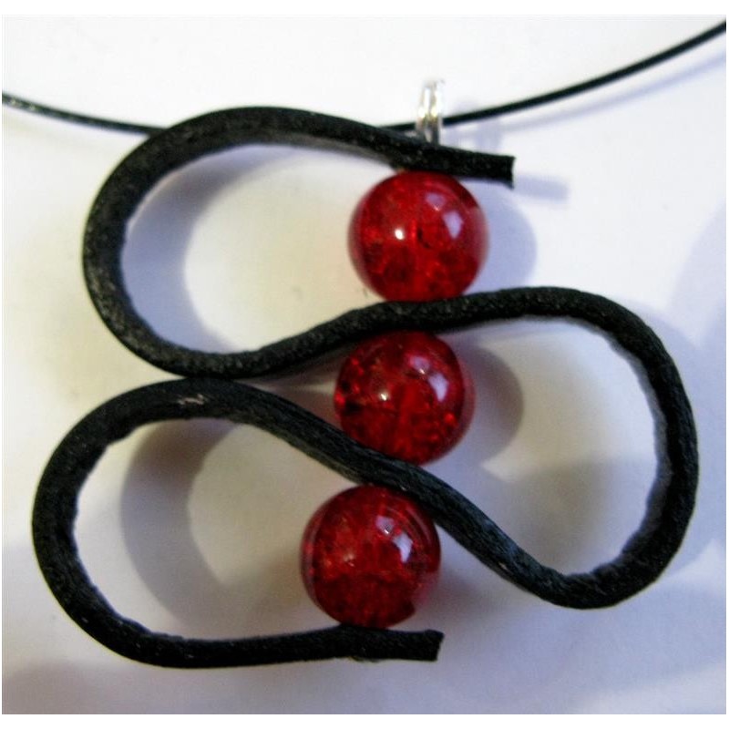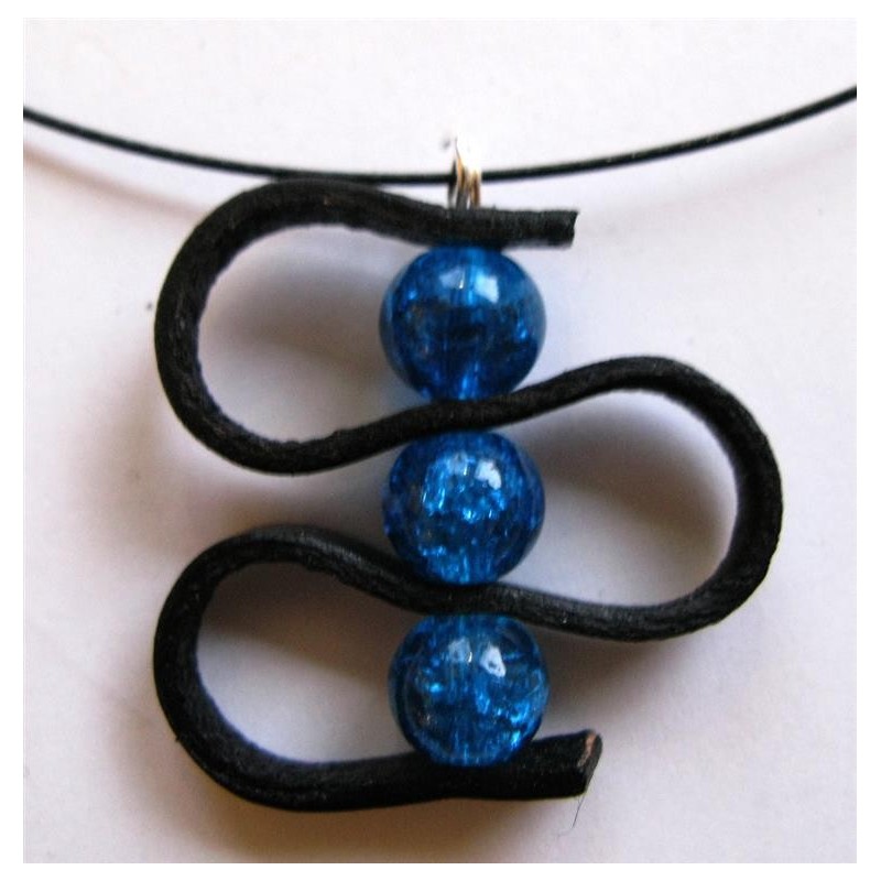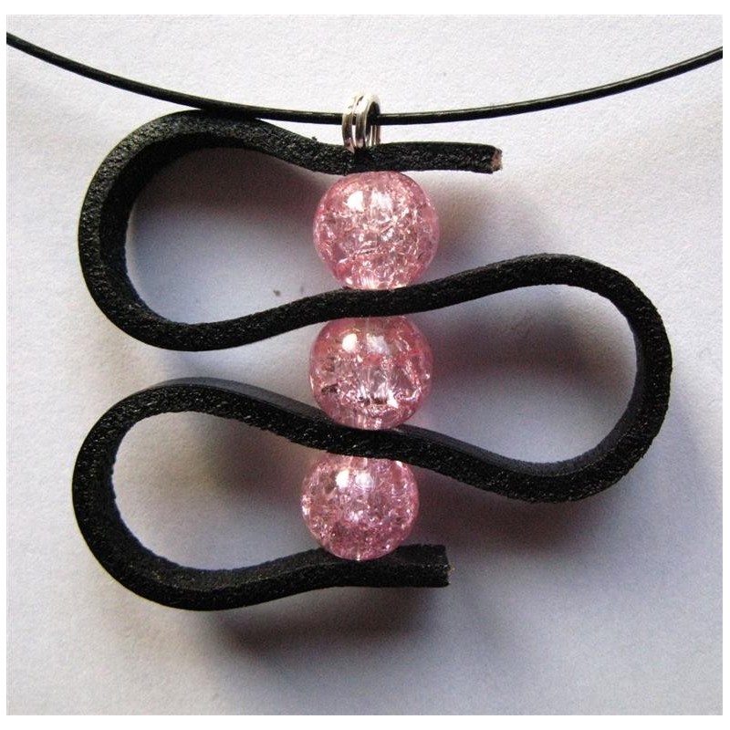 Collier réalisé avec un pendentif cuir plat et perles 10 mm en verre effet craquelé