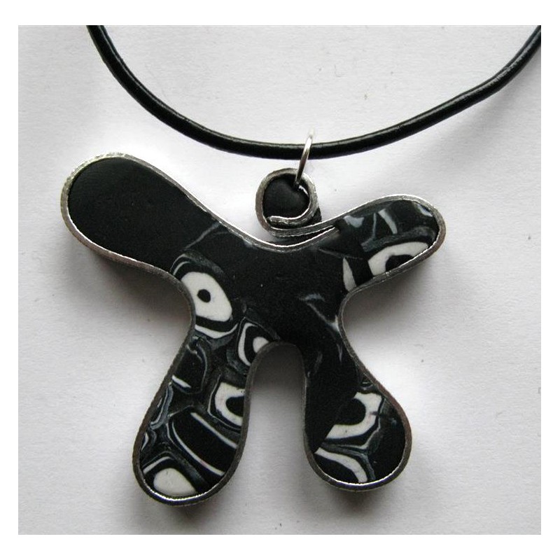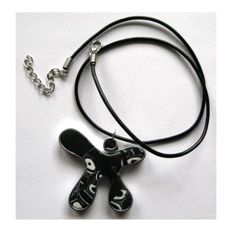 Collier "bonhomme" en fimo noire et blanche avec cordon noir réglable