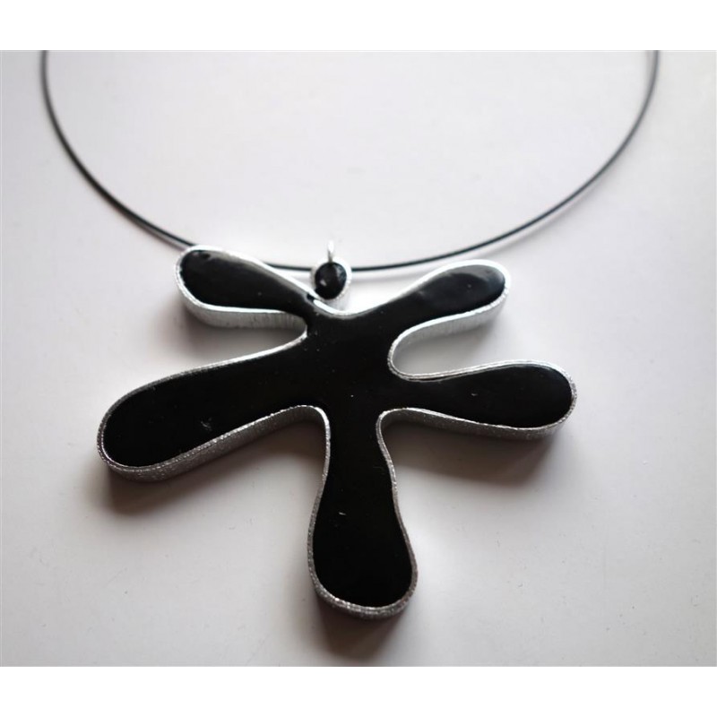 Collier "splash" en fimo noire serti de fil alu plat argent