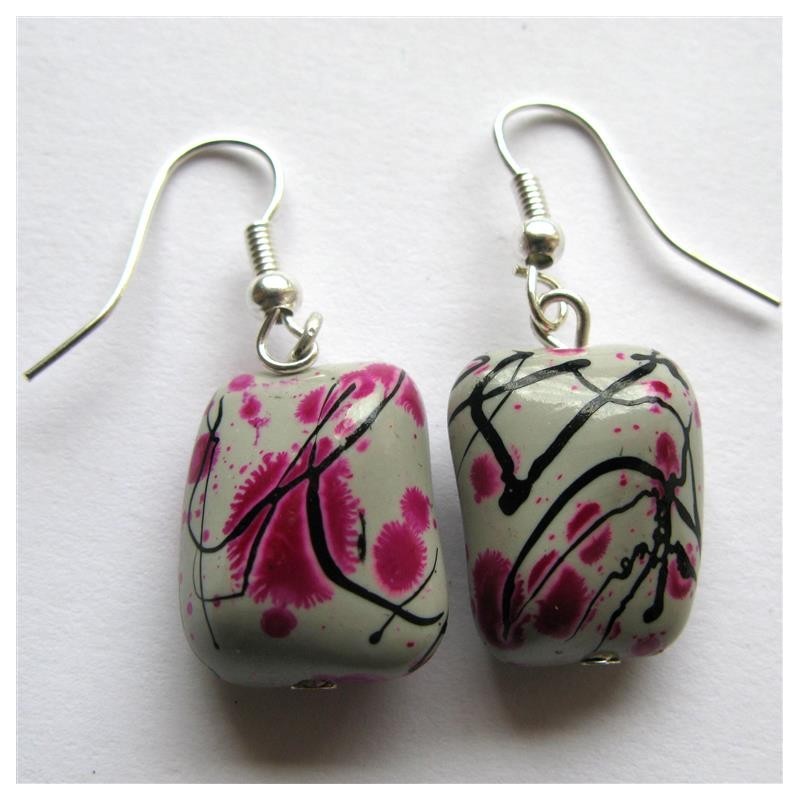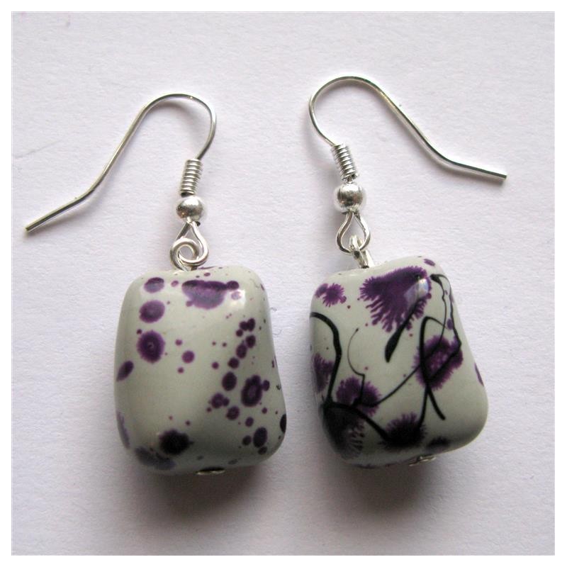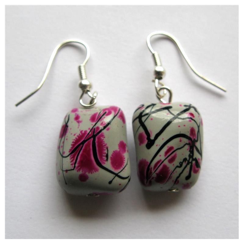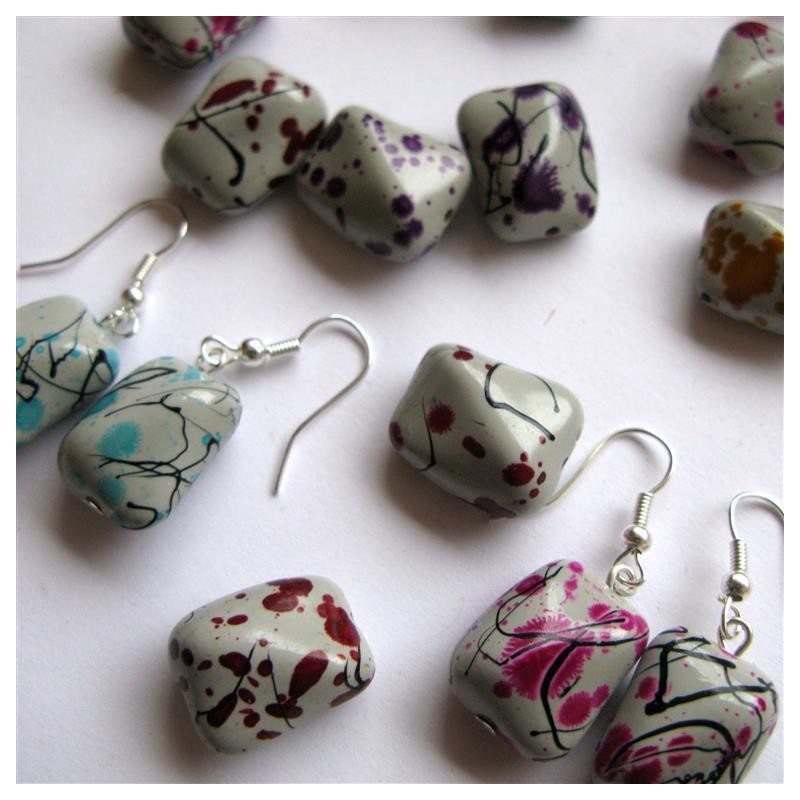 Boucles d'oreilles réalisées avec perle acrylique tachetée