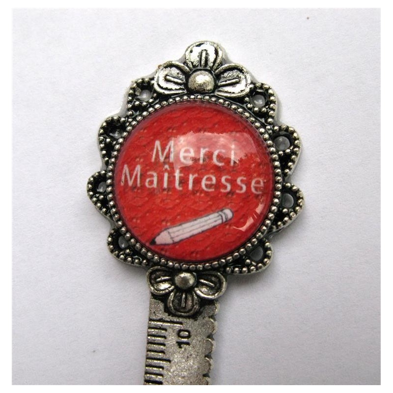 Marque pages règle maîtresse ou fin d'année réalisé avec une tige règle en métal argenté vieilli décoré d'une photo réalisée par mes soins recouverte d'un cabochon.