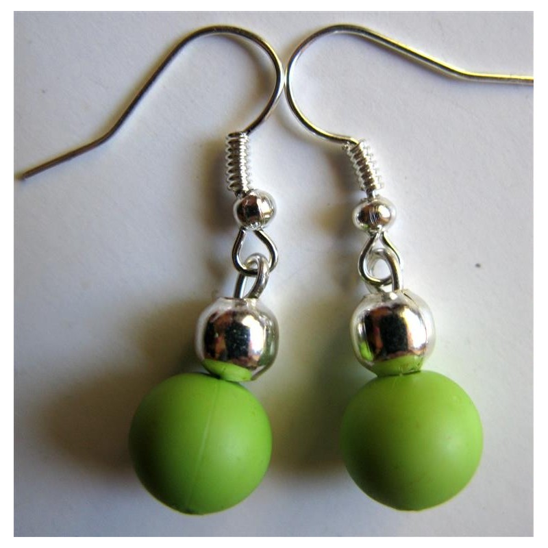 Boucles d'oreilles réalisée avec perle acrylique anis mate de 10 mm de diamètre et perle argentée